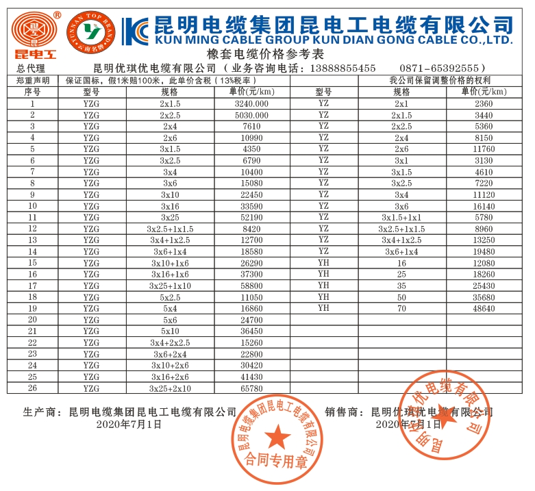 昆明優琪優電纜有限公司為我昆明電纜集團昆電工電纜有限公司特約經銷單位,該公司一直秉承“誠信經營、顧客至上”的經營理念,與我公司簽約經銷各類電線、電纜產品十余年,市場口碑優良,贏得了廣大顧客及市場的認可,銷量逐年攀升。我公司經廣泛的...[詳細]